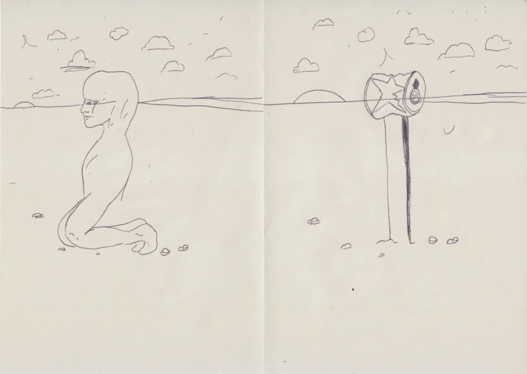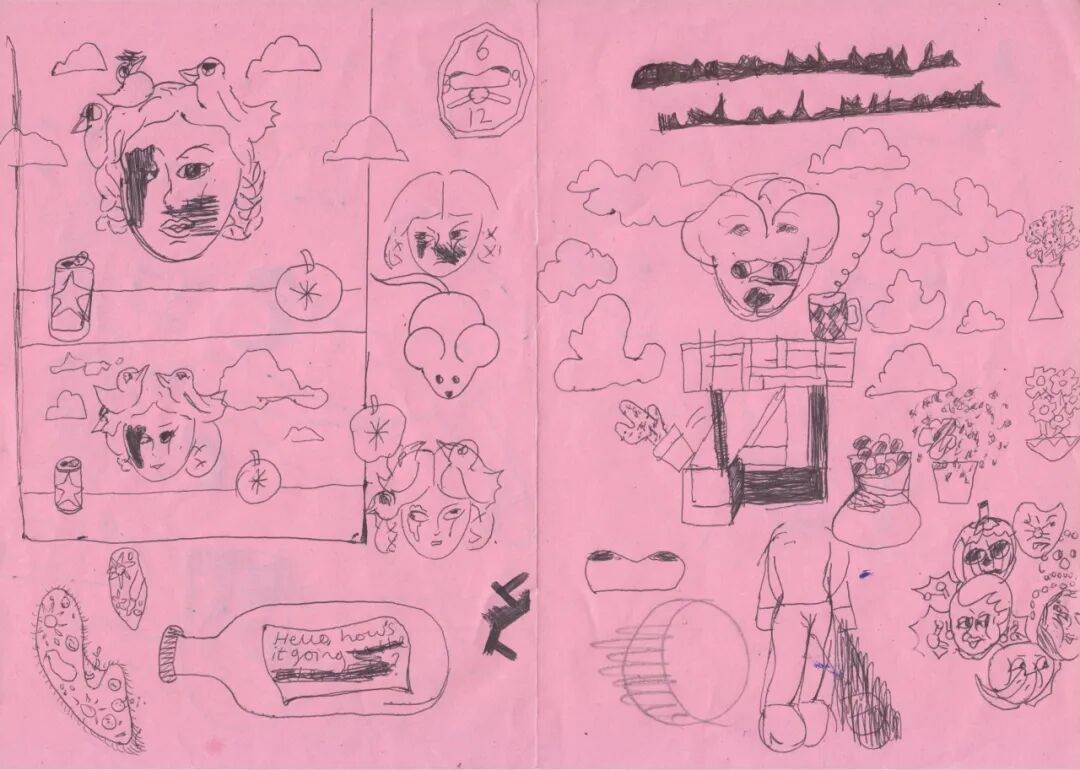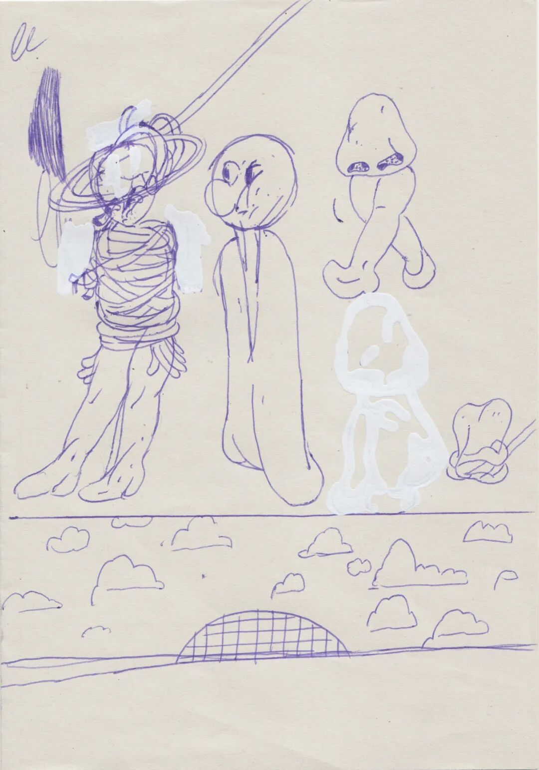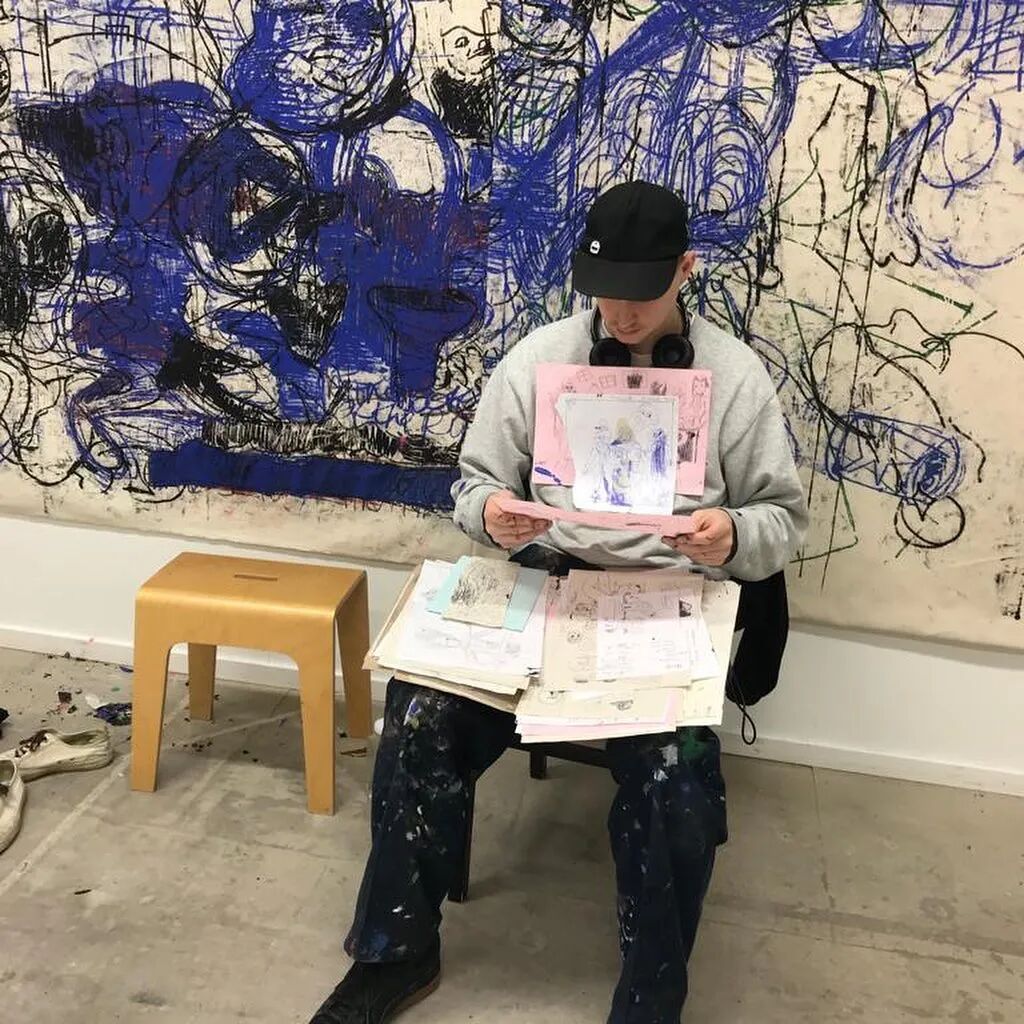 F:我们的纸本作品常常散落在工作室的地面,被不经意的踩踏,上面也许还会有购物清单、撕痕和笔记,有时会还会像卫生纸一样被揉成一团随手塞进口袋里。它们带着强烈的物理属性,像是垃圾或废弃物,却是故事中定格的瞬间,短暂而珍贵。犹如打开一本速写本,没有精心的渲染和过多的思考,却是如此的鲜活。我一直很喜欢翻看艺术家的速写本、他人的手机涂鸦、日记草图或者未完成的创作,我认为这些比最终完成的作品所承载的更多,因为它们是开放的。这也是我们在绘画中一直思考的问题—— 对我们来说,重要的是每一件作品都能拥有自身的能量和个性,有自身的情绪,保持开放。