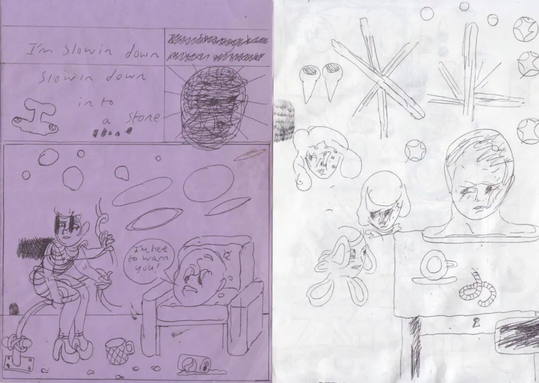 A:所有的涂写、素描、情景、角色或者意象,都是我们潜意识中的某种体现。这是非常直觉性的,我们不想过分深入。因此,我觉得所创作的一切都源于内心深处,某种意义上它们就是我们。但我们喜欢保留一些意义和思考给自我,保持作品的开放性是件美好的事情。