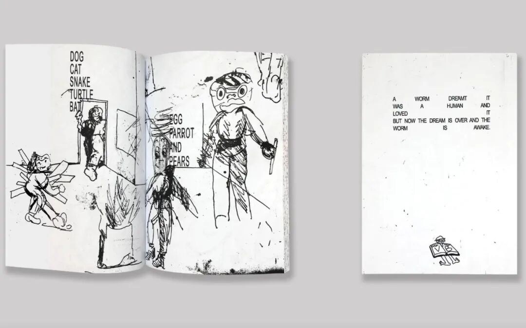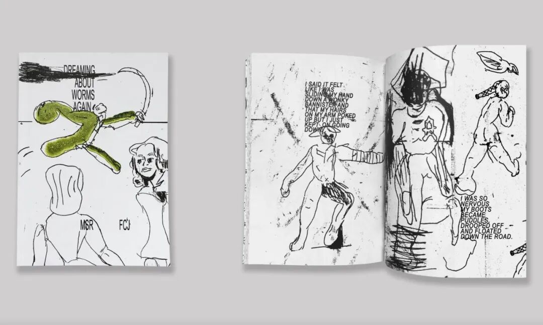 M:是的,我们热衷于制作书籍、独立杂志和漫画,但无法兼顾所有,因为绘画会花去很大一部分时间。例如《再次梦见虫子(Dreaming About Worms Again)》这本书,其中的文字、图像和设计编排共同营造出了一种试验性的氛围与故事,也让我们以类似的方式去处理绘画创作。制作那本书的过程里我们扫描了多幅作品,再用 photoshop 对图像进行编辑和拼贴直到让我们感到陌生,最后再加入文字等等。我们将这个方式带入绘画的创作过程,只是以手工替代 photoshop 进行切割、涂擦、编辑和重新排列,来探索新的构成。