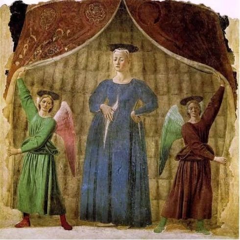 鉴于马伊穆纳在意大利接受的是宗教家庭教育,她的艺术语言也采用了文艺复兴时期古典画家的一些最具代表性的元素。这在文艺复兴早期尤为明显——在统一简化的背景上系统地使用素雅明亮的色彩(他们实际上是用压碎的宝石来制作色彩)。马伊穆纳的构图也非常注重服饰——它就像神圣建筑的支撑物——既隐藏又保护着处女的形象。最后,与古典绘画一样,她在画中使用了大量散落的符号,每个符号都指向特定的背景点,除了艺术品本身的美之外,这也有助于辨别艺术家的意图。